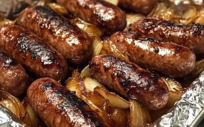 Salsichas Bratwurst Assadas no Forno com Cebolas Caramelizadas e Maçãs é uma deliciosa variação de um clássico favorito do Meio-Oeste…