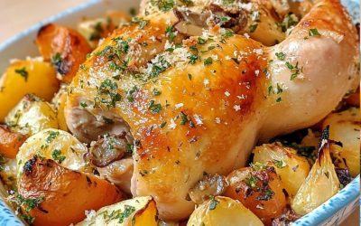 Receita de frango assado com cogumelos porcini e manteiga de alho