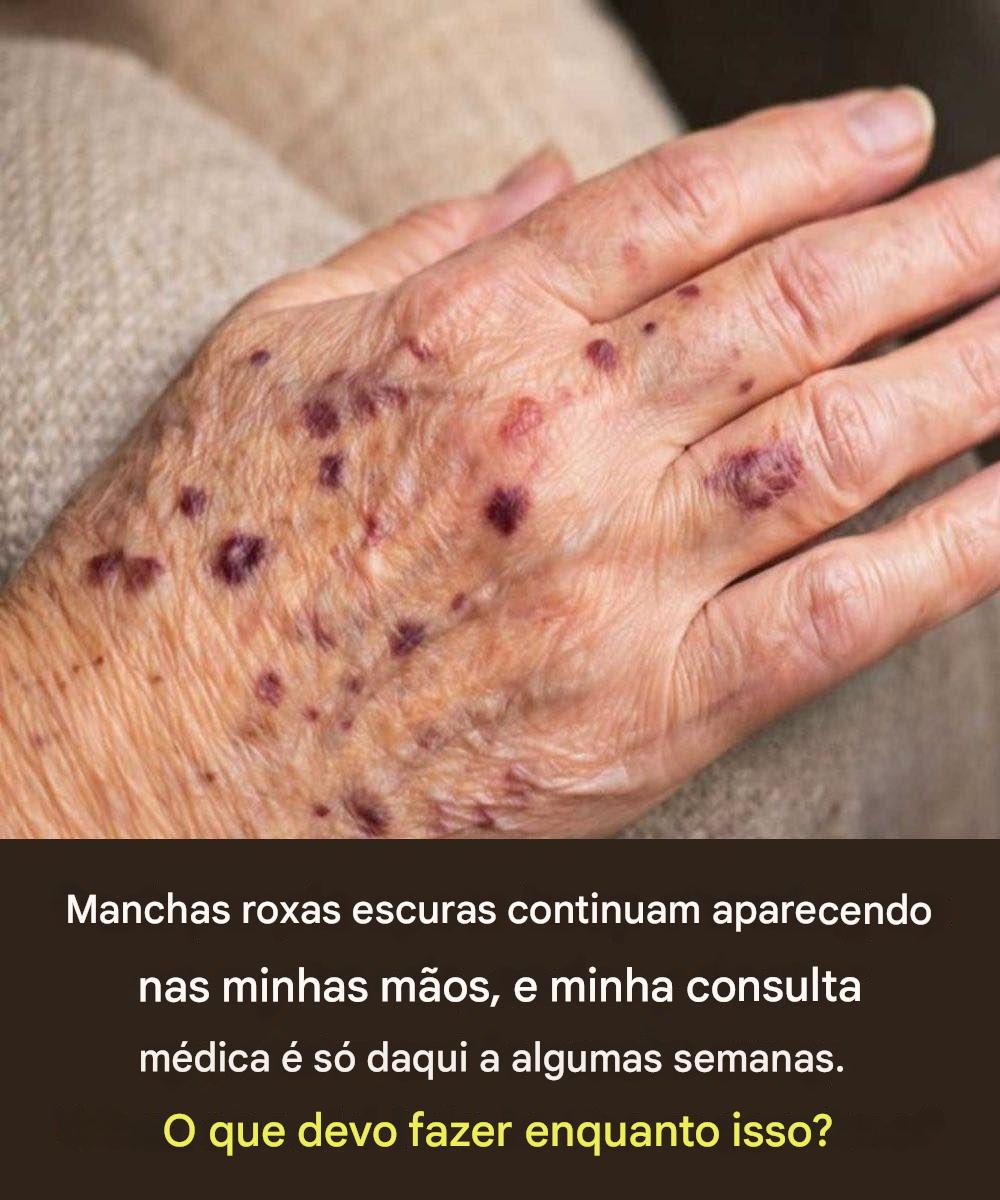 Notar o aparecimento repentino de manchas roxas escuras nas mãos pode ser preocupante, especialmente quando a próxima consulta médica ainda está a semanas de distância. Essas manchas geralmente se assemelham a hematomas e podem surgir sem aviso prévio, deixando você confuso e preocupado com o que está acontecendo sob a sua pele. Embora nada substitua uma avaliação médica profissional, entender algumas possibilidades comuns pode ajudar a aliviar a ansiedade e orientá-lo enquanto isso.