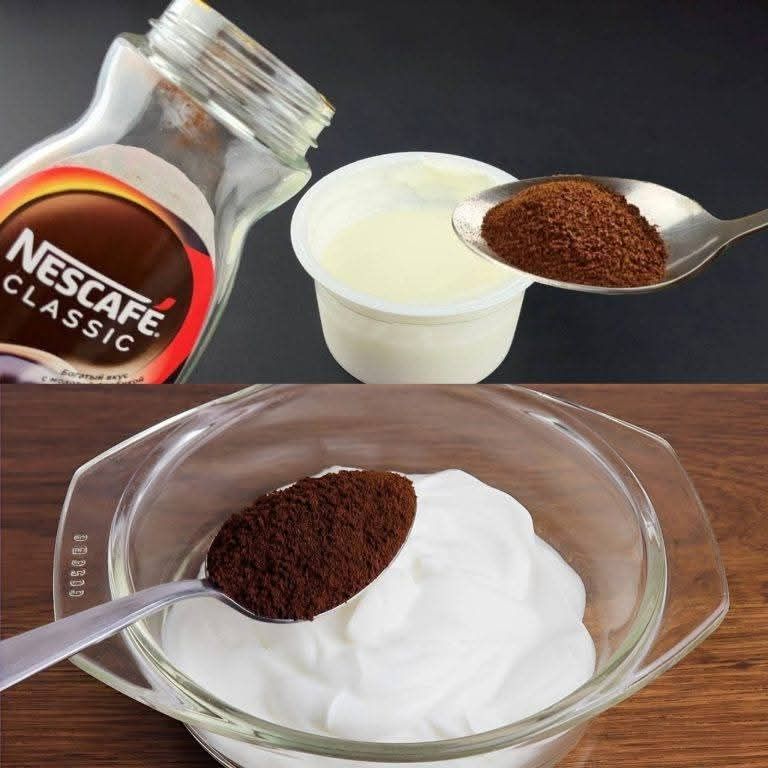 Misture o café e o iogurte – Em uma tigela, bata o iogurte e o café até obter uma mistura homogênea e cremosa.