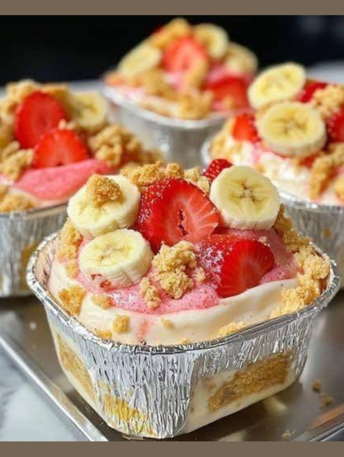 Imagine a cremosidade aveludada do cheesecake, o conforto nostálgico do pudim de banana e o frescor vibrante dos morangos — tudo em camadas numa sobremesa irresistível.