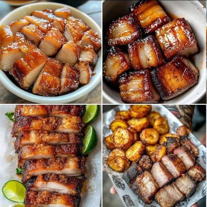 Prepare a carne: Corte a barriga de porco em pedaços com aproximadamente 5 cm de espessura. Se a pele tiver muitos pelos, retire-os com uma faca afiada.